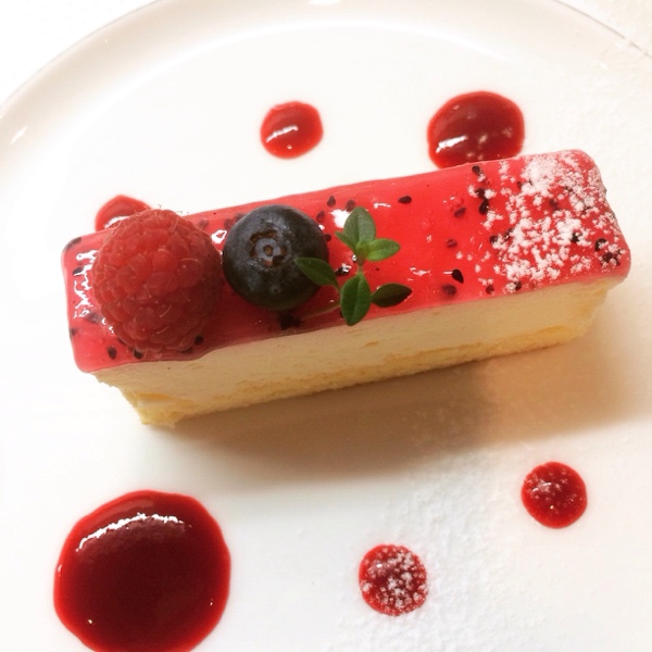 レモンムース ブラッドオレンジのジュレ アルベキーナオリーブオイルのアイス添え
